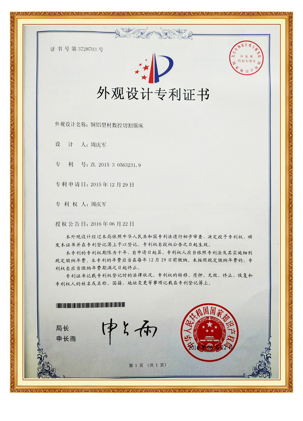 • 公司多款設備擁有專利及實用新型專利證書,實用性有可觀的提高,新型產品解決了企業使用老式切割機鋸切材料效率低,安全性差,精度不達標等問題,有效為客戶提高了產能并節省了人工成本,取得了客戶一定程度的認可